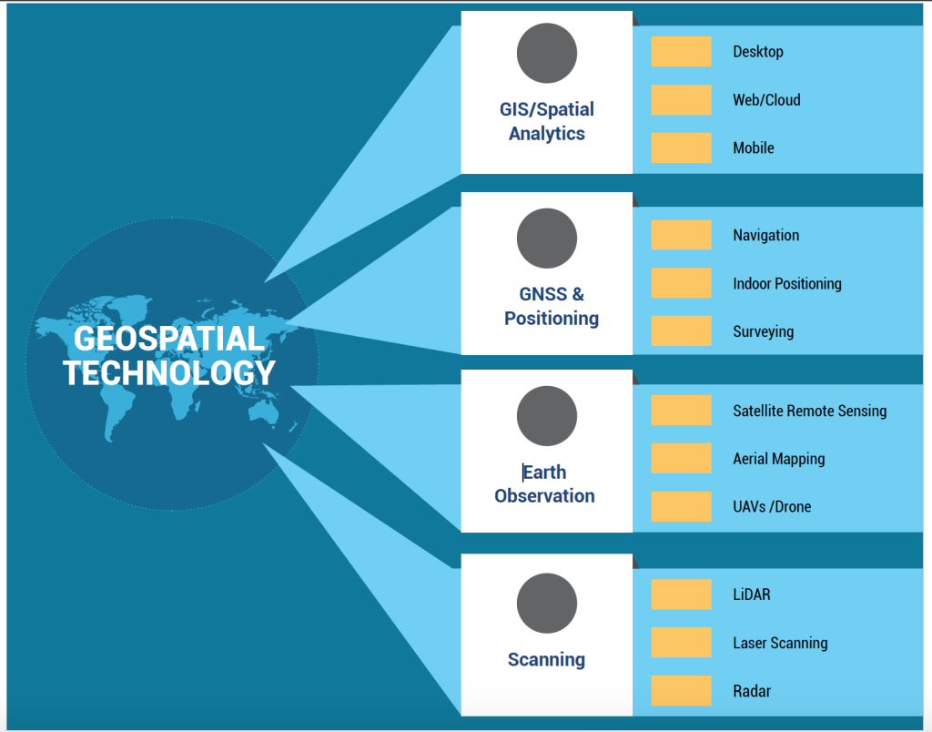 Geospatial Technology refers to the suite of tools and systems — such as GIS, GPS, remote sensing, and spatial analytics — that enable the collection, analysis, and visualization of geographically referenced data.